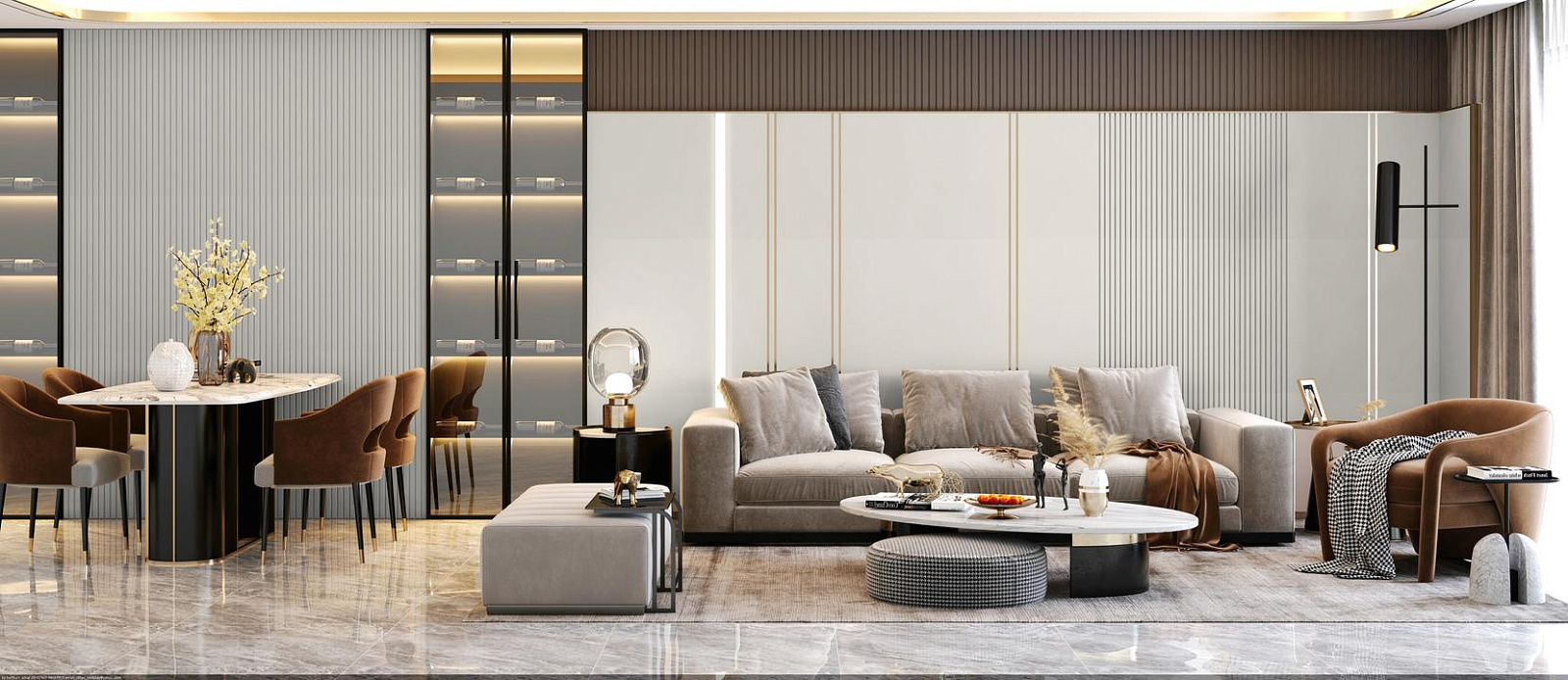 Проявляет себя как гармоничная база интерьера. В течение дня демонстрирует разные характеры — от свежести утра до уюта вечера.