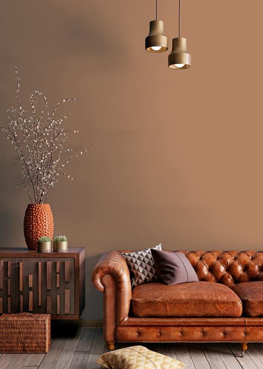Визуально уравновешивает помещение. При дневном свете коричневый тон проявляется ярче, вечером становится более мягким.