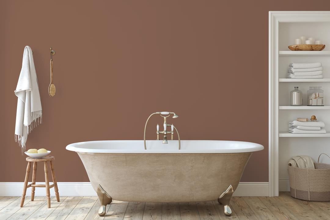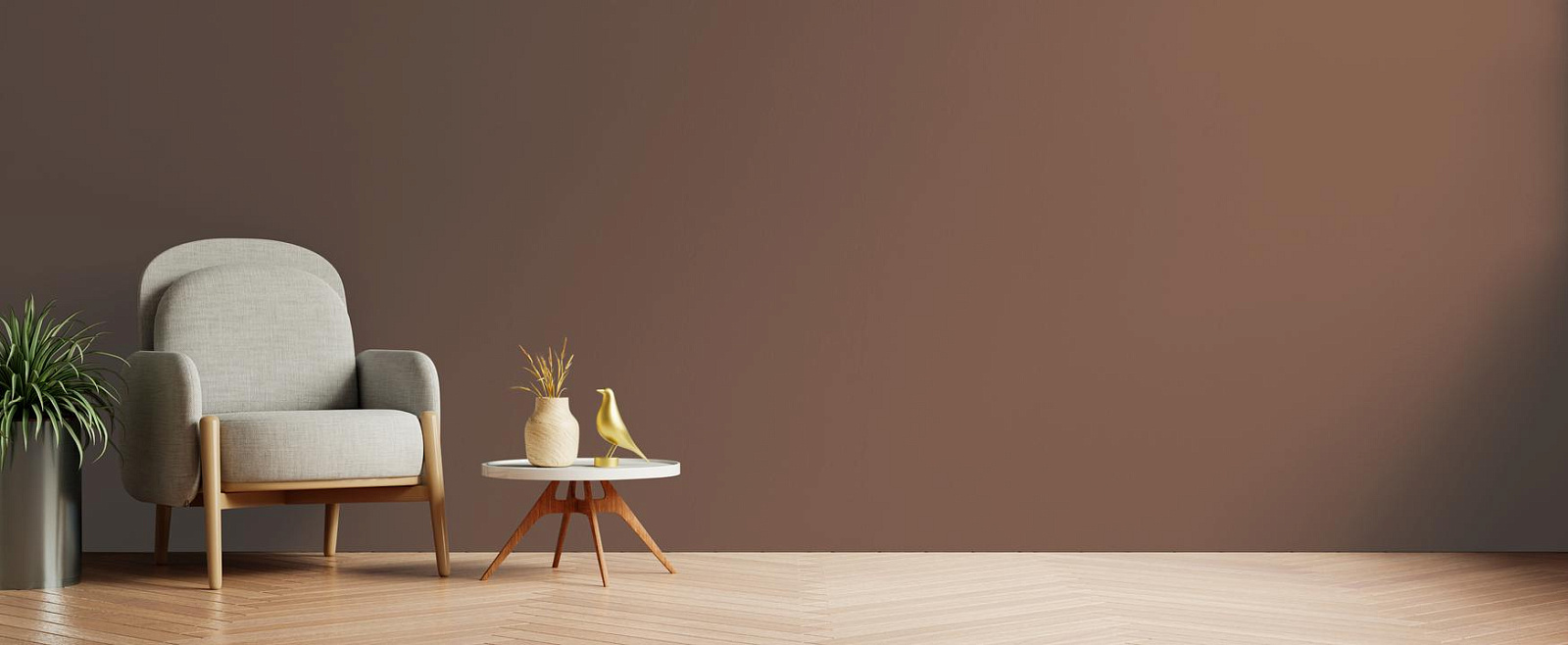 Визуально уравновешивает помещение. При дневном свете коричневый тон проявляется ярче, вечером становится более мягким.