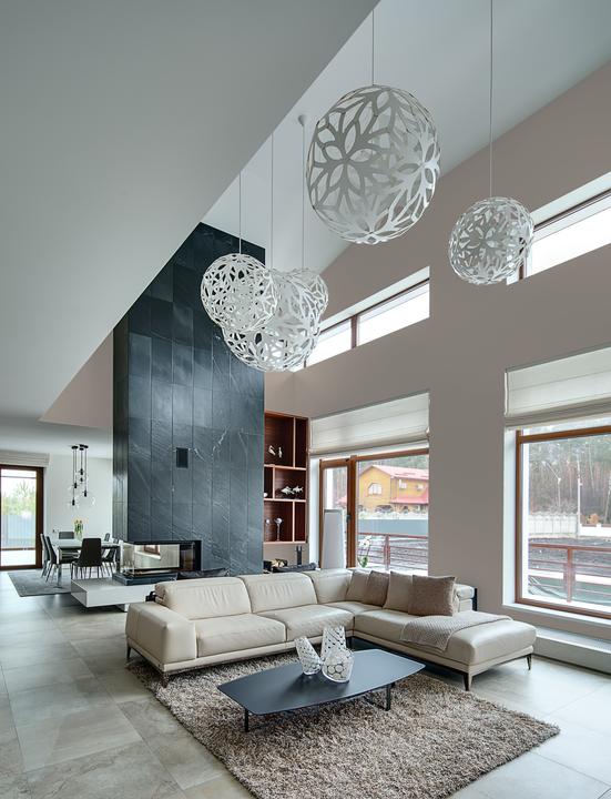 Проявляет себя как гармоничная база интерьера. В течение дня демонстрирует разные характеры — от свежести утра до уюта вечера.