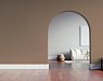 Визуально уравновешивает помещение. При дневном свете бежевый тон проявляется ярче, вечером становится более мягким.