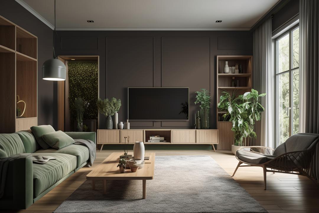 Оттенок функционирует как идеальная основа для интерьерных экспериментов. Дневной свет подчёркивает его глубину, искусственное освещение добавляет мягкости.