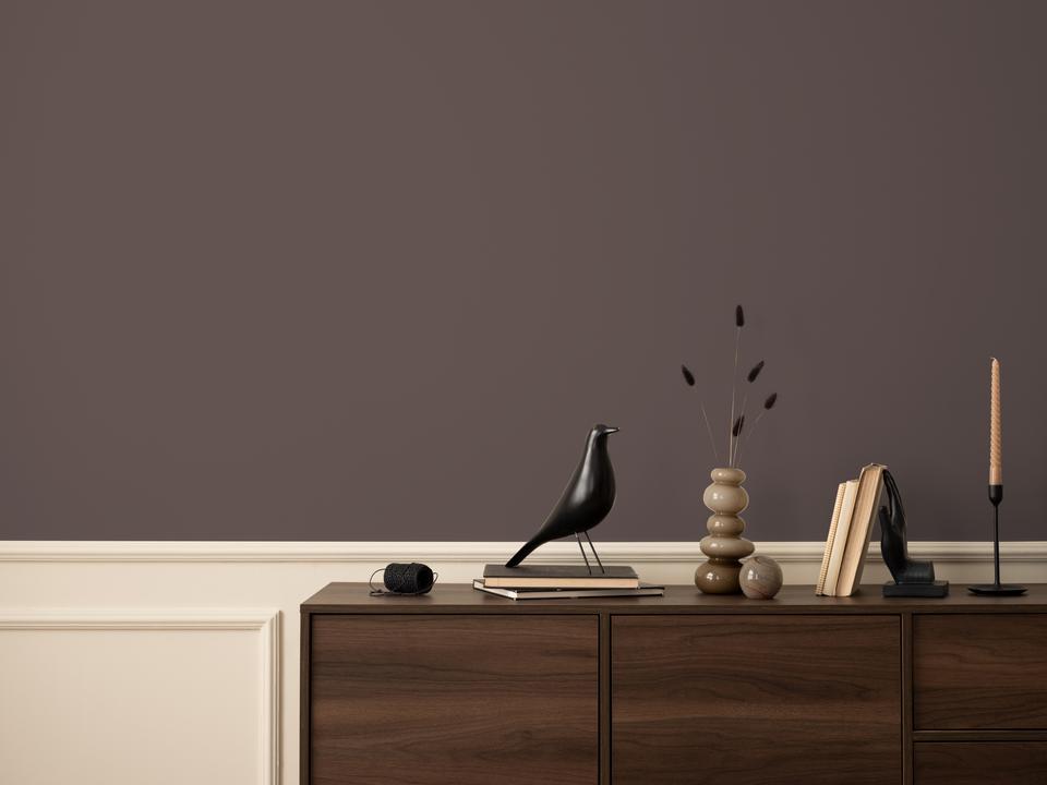 Оттенок функционирует как идеальная основа для интерьерных экспериментов. Дневной свет подчёркивает его глубину, искусственное освещение добавляет мягкости.