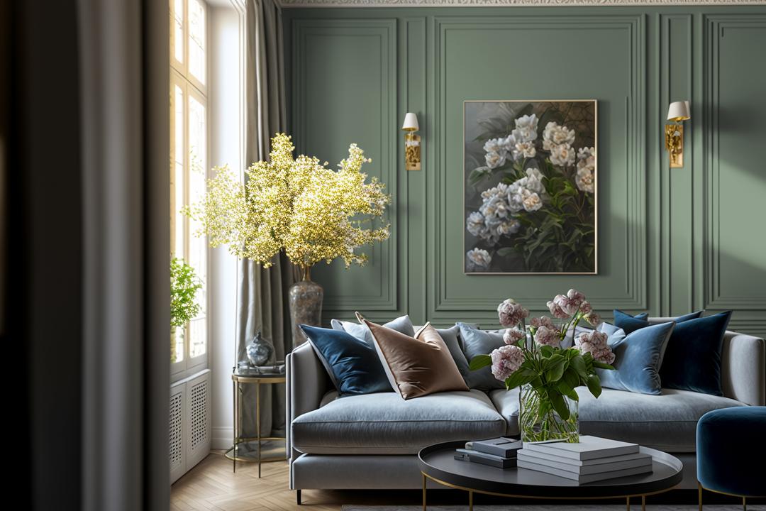 - Глубина цвета — средний тон создаёт уютное пространство.