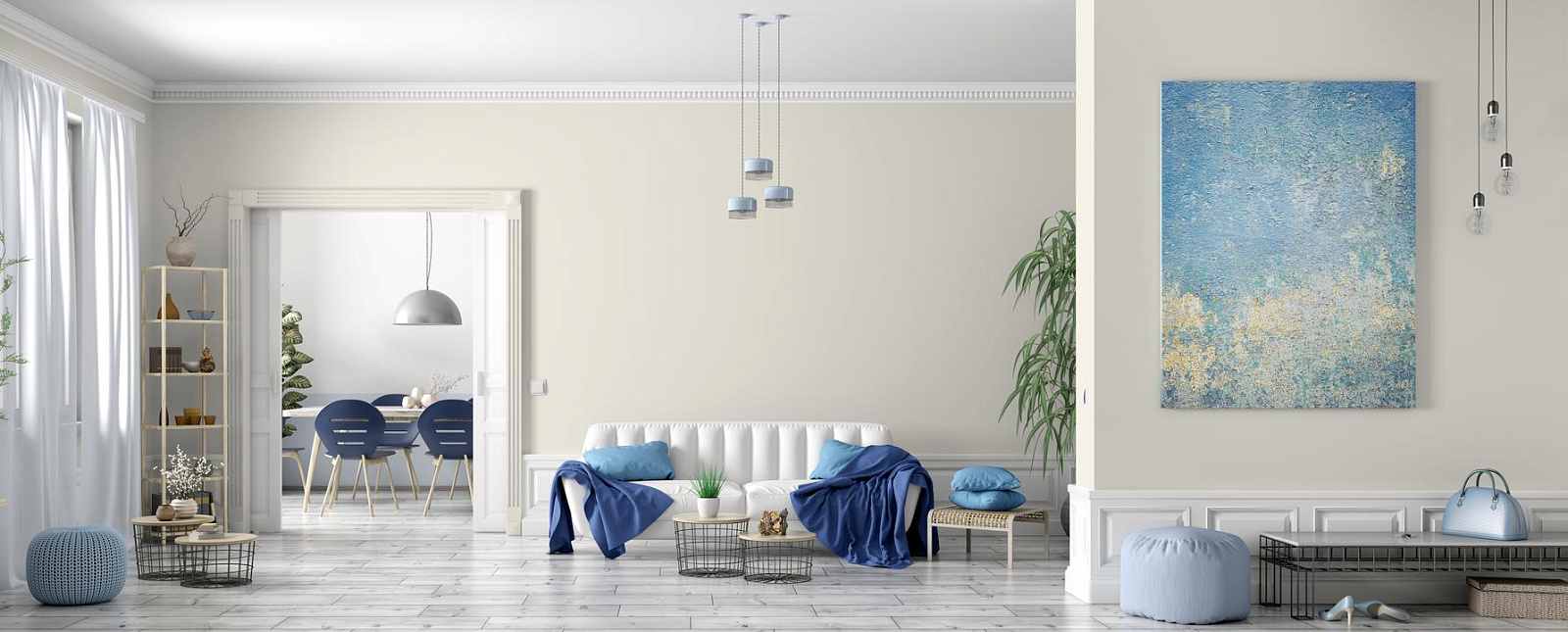 - Визуальные свойства: Создает эффект приближения стен, что делает чрезмерно большие и пустые помещения более уютными.