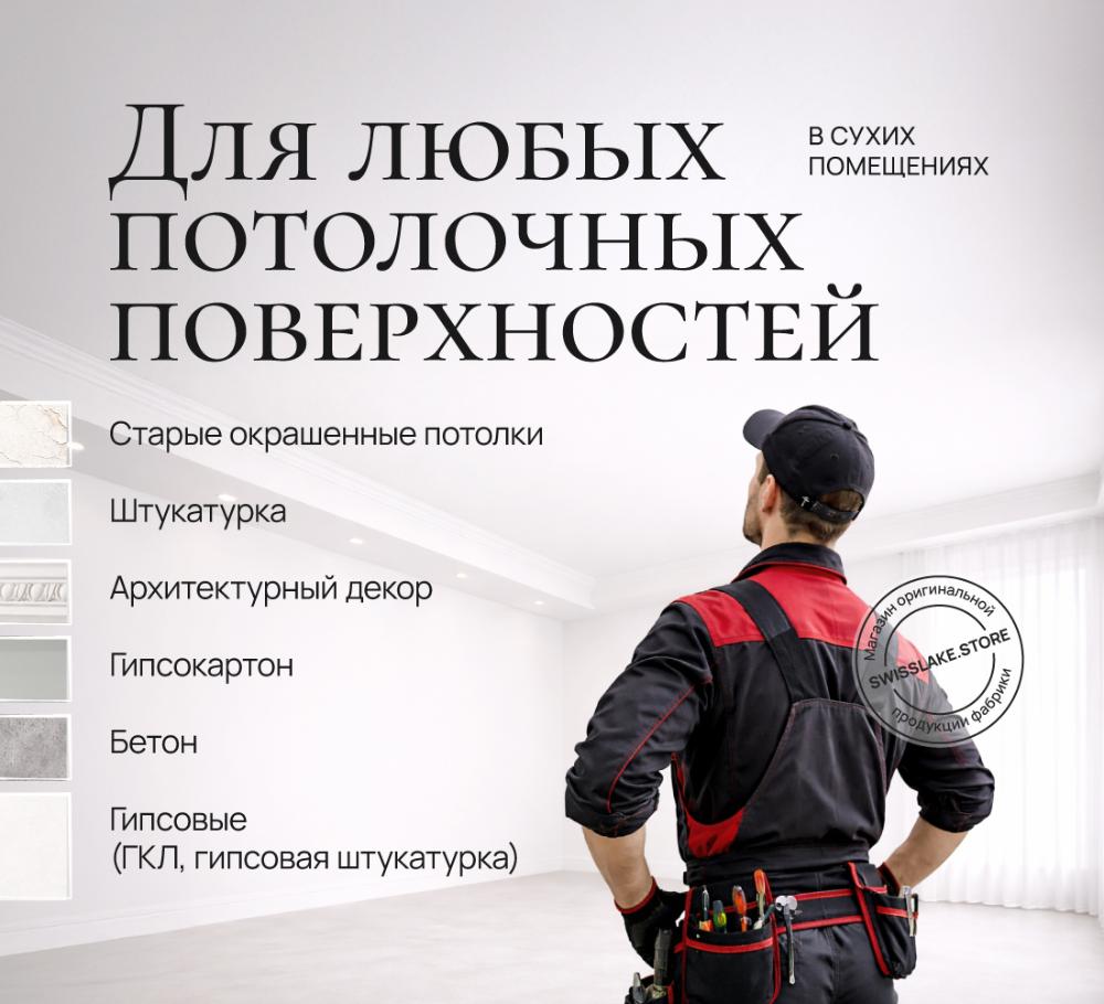 Готовая к использованию глубокоматовая краска для создания безупречно ровных и белых потолков. Заколерованная на заводе в эталонный архитектурно-белый цвет, она обеспечивает максимальную степень белизны и стабильность оттенка. Уникальные микросферы в составе эффективно рассеивают свет, визуально маскируя мелкие неровности основания и создавая совершенную матовую поверхность. Краска не имеет резкого запаха и содержит добавки для защиты от биопоражений.