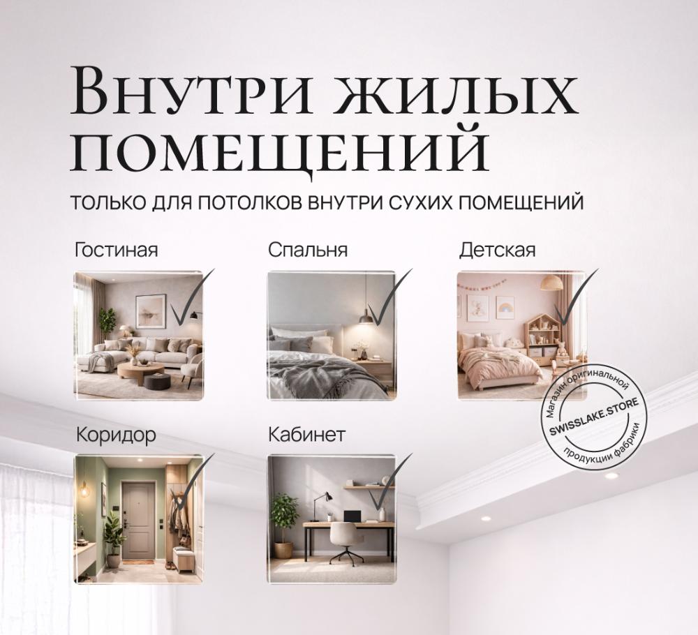 Назначение: Финишная отделка потолков в сухих отапливаемых помещениях, где критически важны эстетика, долговечность и экологичность покрытия.